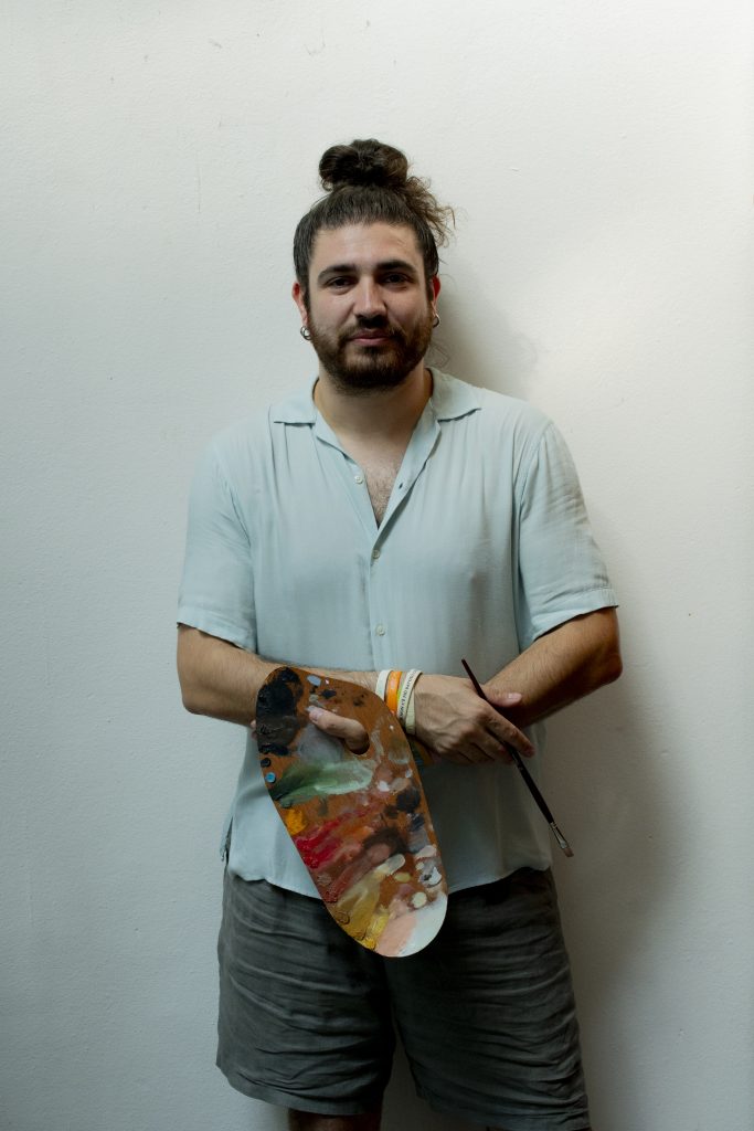 Over time, his interest shifted toward the visual arts, leading him to begin painting as a self-taught artist, initially working with acrylics. He later refined his technique through courses held by artist and instructor Monica Anselmi at the Arvima Civic School, where he explored oil painting and began experimenting with a variety of materials and techniques.